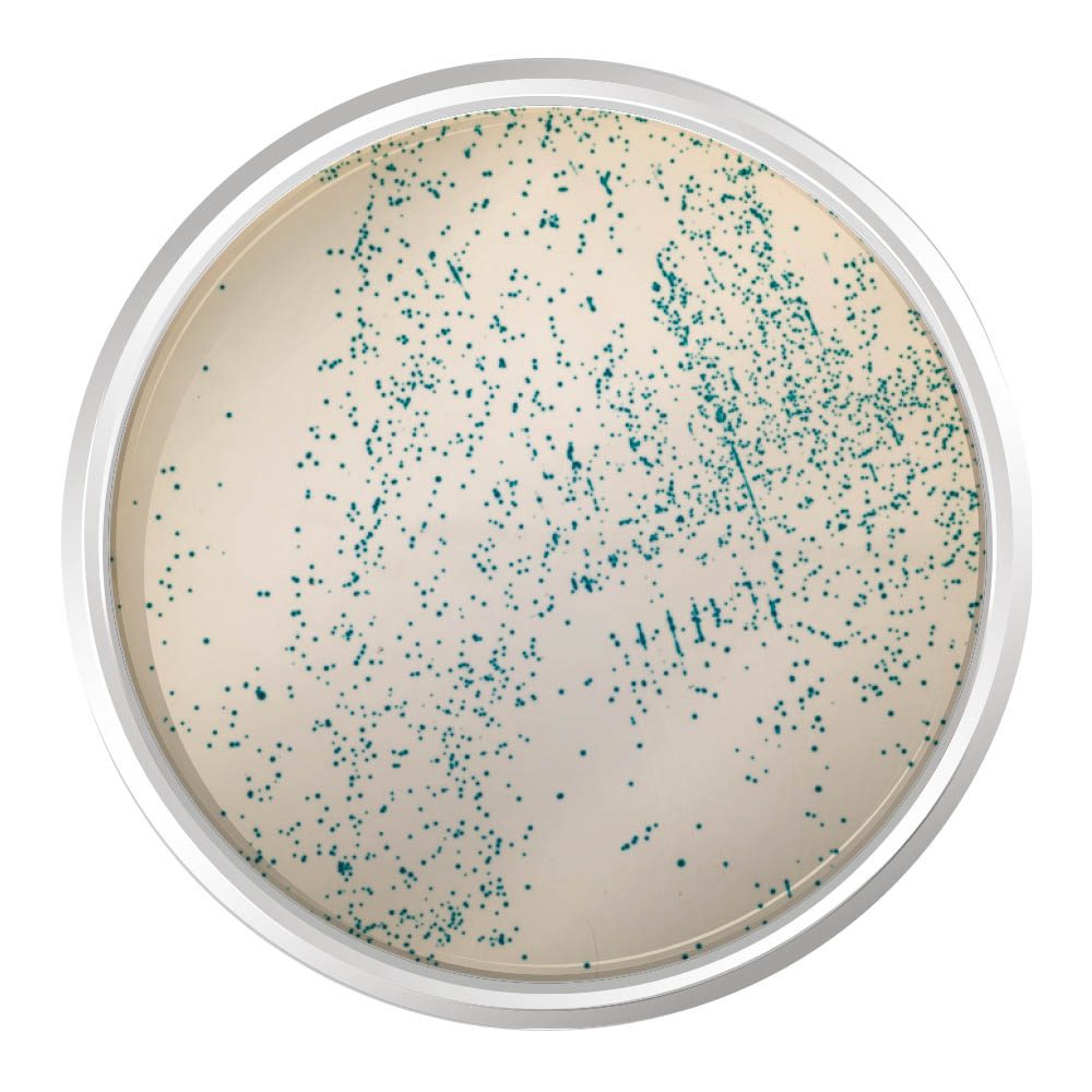 Meio cromogênico para detecção e quantificação de enterococos em água através da técnica de membrana filtrante em um único passo.