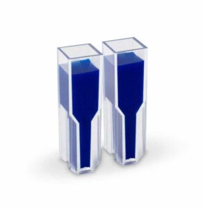 Volume 1,5 mL; Passo 10 mm; CV de tranmitância < 0,3%; Largura interna 10,8 mm; Dimensão externa 12,4 mm; 100 unidades/caixa