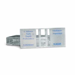 Malha Neubauer melhorada; Resolução 0,0025 mm²; Profundidade 0,100 mm; 1 câmara e 2 lamínulas/caixa